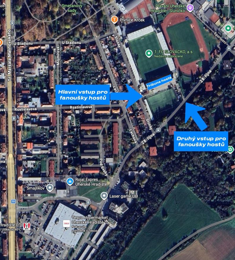 Pokud se do Uherského Hradiště chystáte, dorazte na stadion s dostatečným předstihem, aby se předešlo tlačenicím u vstupu do sektoru hostů těsně před začátkem utkání. Brány stadionu se otevřou už v 11:00. Vzhledem k tomu, že turnikety u sektoru hostů jsou kapacitně určeny především pro tento sektor hostů a fanoušků Baníku dorazí výrazně více, umožní domácí klub nově využít také druhý vstup na stadion z ulice 28. října.