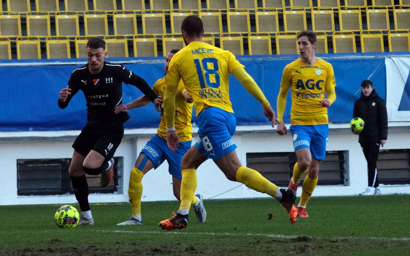 Tepličtí zahrozili výrazněji po čtvrthodině hry z brejkové situace. Před Janem Laštůvkou se ve finále s míčem na noze zjevil Daniel Trubač, gólman Baníku byl ale dostatečně rychlý, prostor před ním uzavřel a ránu zablokoval.