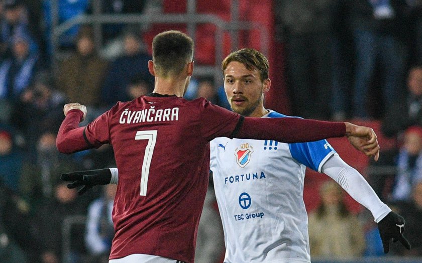 Hosté začali být nebezpečnější a ve 21. minutě zahrál na malém vápně po přímém kopu Pražanů smolně rukou Jan Juroška. Nařízenou penaltu proměnil Lukáš Haraslín.