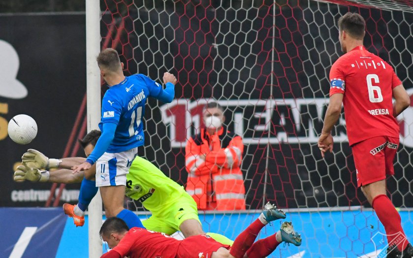 Domácí byli nejblíž možnému gólu po centru Šimona Šumbery, který se nakonec odrazil od Martina Filla těsně vedle branky Jana Laštůvky.