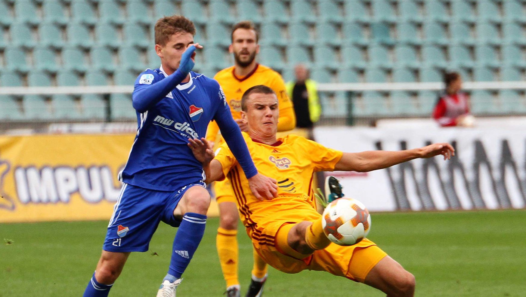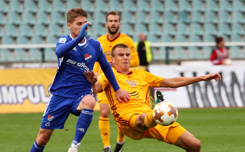 Baník neustále stupňoval tlak a ve zbytku prvního poločasu se hrálo v podstatě jen na polovině Dukly, která ale čas od času vyrazila do nebezpečného kontru. Mustedanagič naštěstí ve 13. minutě po brejku s Holendou koncovku nezvládl.