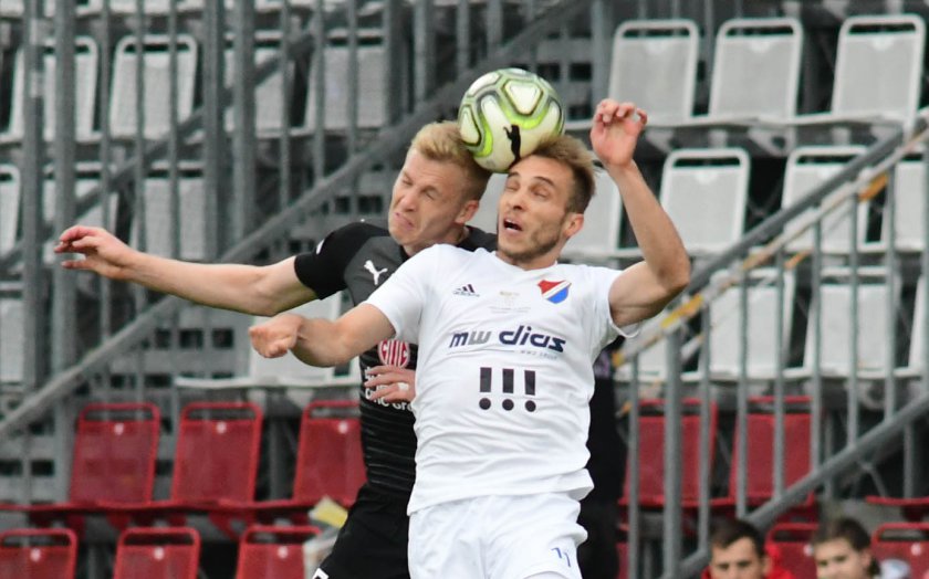 Ve skvělé atmosféře se jako první dostala do nebezpečného zakončení Slavia. V 11. minutě si Tomáš Souček naskočil na centr Jana Bořila, hlavičkoval a dal poprvé vyniknout Viktoru Budinskému v brance Baníku. Ostravský gólman stál, kde měl. A ránu chytil.