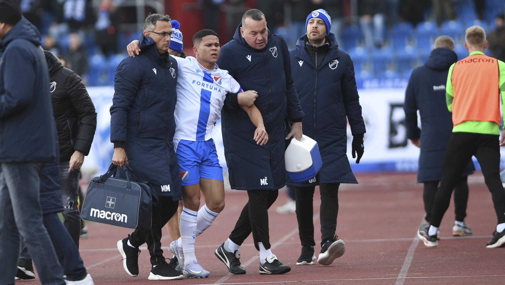 „Je tam bohužel i natržený vaz. Hráč teď dostal na dva týdny na kotník ortézu a uvidíme, jak se bude léčba vyvíjet,“ upřesnil klubový lékař Martin Mohyla.